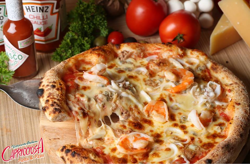 Chiếc bánh Pizza với viền phồng, xém củi, chuẩn Ý tại Capricciosa